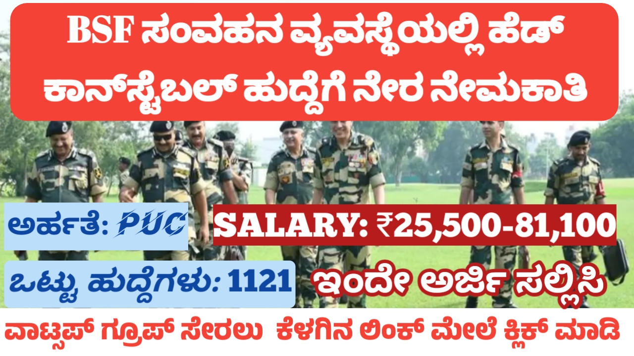 ಗೃಹ ಸಚಿವಾಲಯದ ಗಡಿ ಭದ್ರತಾ ಪಡೆ, ರೇಡಿಯೋ ಆಪರೇಟರ್ ಮತ್ತು ರೇಡಿಯೋ ಮೆಕ್ಯಾನಿಕ್ (ನಾನ್-ಗೆಜೆಟೆಡ್) ಕೇಡರ್ ನೇಮಕಾತಿ ನಿಯಮಗಳು-2018 ರಲ್ಲಿರುವ ನಿಬಂಧನೆಗಳಿಗೆ ಅನುಸಾರವಾಗಿ, ಗ್ರೂಪ್ ‘ಸಿ’ ಯಲ್ಲಿ ಖಾಲಿ ಇರುವ ಹೆಡ್ ಕಾನ್ಸ್ಟೇಬಲ್ (ರೇಡಿಯೋ ಆಪರೇಟರ್) ಮತ್ತು ಹೆಡ್ ಕಾನ್ಸ್ಟೇಬಲ್ (ರೇಡಿಯೋ ಮೆಕ್ಯಾನಿಕ್) ಹುದ್ದೆಗಳನ್ನು ತಾತ್ಕಾಲಿಕವಾಗಿ ಭರ್ತಿ ಮಾಡಲು ಅರ್ಹ ಭಾರತೀಯ ನಾಗರಿಕರಿಂದ (ಪುರುಷ ಮತ್ತು ಮಹಿಳೆ) ಆನ್ಲೈನ್ ಅರ್ಜಿಗಳನ್ನು ಆಹ್ವಾನಿಸಲಾಗಿದೆ. ಹುದ್ದೆಗಳು ಅಖಿಲ ಭಾರತ ಹೊಣೆಗಾರಿಕೆಯನ್ನು ಹೊಂದಿರುತ್ತವೆ ಮತ್ತು ಆಯ್ಕೆಯಾದ ಅಭ್ಯರ್ಥಿಗಳನ್ನು ಭಾರತದಲ್ಲಿ ಮತ್ತು ವಿದೇಶಗಳಲ್ಲಿ ಎಲ್ಲಿ ಬೇಕಾದರೂ ಪೋಸ್ಟ್ ಮಾಡಬಹುದು. ನೇಮಕಾತಿಯ ನಂತರ, ಅಭ್ಯರ್ಥಿಗಳನ್ನು ಬಿಎಸ್ಎಫ್ ಕಾಯ್ದೆ ಮತ್ತು ನಿಯಮಗಳಿಂದ ನಿಯಂತ್ರಿಸಲಾಗುತ್ತದೆ. ಅರ್ಹ ಅಭ್ಯರ್ಥಿಗಳಿಂದ ಅರ್ಜಿಗಳನ್ನು ಆನ್ಲೈನ್ ಮೋಡ್ ಮೂಲಕ ಮಾತ್ರ ಸ್ವೀಕರಿಸಲಾಗುತ್ತದೆ. ಅರ್ಜಿ ಸಲ್ಲಿಸಲು ಬೇರೆ ಯಾವುದೇ ವಿಧಾನವನ್ನು ಅನುಮತಿಸಲಾಗುವುದಿಲ್ಲ. ಆನ್ಲೈನ್ ಅರ್ಜಿ ವಿಧಾನ 24.08.2025 ರಂದು ರಾತ್ರಿ 11:00 ಗಂಟೆಗೆ ತೆರೆಯಲಾಗುವುದು ಮತ್ತು 23.09.2025 ರಂದು ರಾತ್ರಿ 11:59 ಗಂಟೆಗೆ ಮುಚ್ಚಲಾಗುತ್ತದೆ.