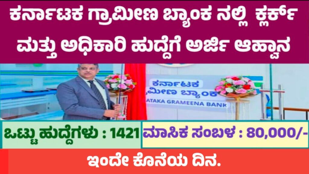 ಕರ್ನಾಟಕ ಗ್ರಾಮೀಣ ಬ್ಯಾಂಕ ನಲ್ಲಿ  ಕ್ಲರ್ಕ್ ಮತ್ತು ಅಧಿಕಾರಿ ಹುದ್ದೆಗೆ ಅರ್ಜಿ ಆಹ್ವಾನ