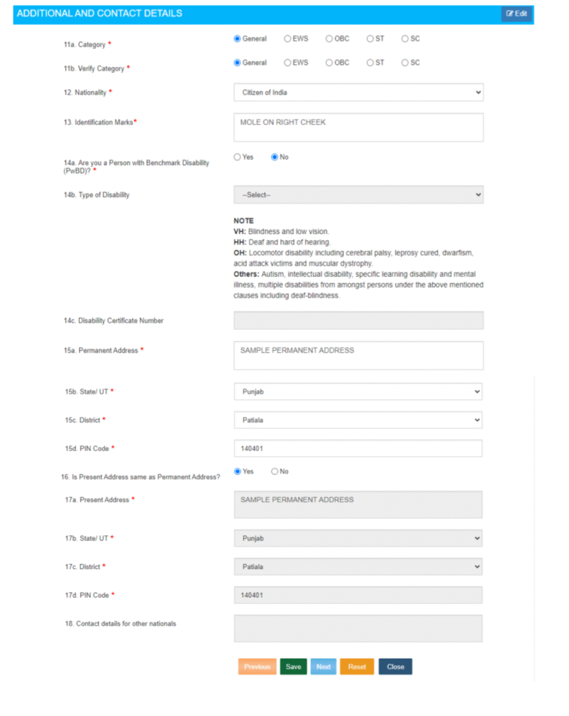 18. ಕ್ರಮ. ಸಂಖ್ಯೆ-25 ರಿಂದ 26: ಪ್ರಸ್ತುತ ಮತ್ತು ಶಾಶ್ವತ ವಿಳಾಸಕ್ಕೆ ಸಂಬಂಧಿಸಿದ ಮಾಹಿತಿಯನ್ನು ಒಂದು ಬಾರಿ ನೋಂದಣಿ ಡೇಟಾದಿಂದ ಸ್ವಯಂಚಾಲಿತವಾಗಿ ಭರ್ತಿ ಮಾಡಲಾಗುತ್ತದೆ.