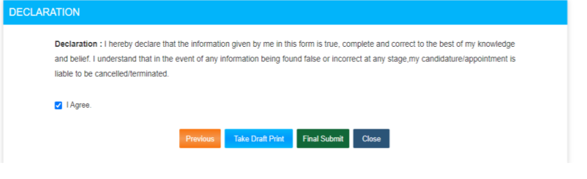 22. ಘೋಷಣೆಯನ್ನು ಎಚ್ಚರಿಕೆಯಿಂದ ಪರಿಶೀಲಿಸಿ ಮತ್ತು ನೀವು ಅದನ್ನು ಒಪ್ಪಿಕೊಂಡರೆ “ನಾನು ಒಪ್ಪುತ್ತೇನೆ” ಚೆಕ್ ಬಾಕ್ಸ್ ಮೇಲೆ ಕ್ಲಿಕ್ ಮಾಡಿ. ಕ್ಯಾಪ್ಚಾ ಕೋಡ್ ಅನ್ನು ಭರ್ತಿ ಮಾಡಿ.